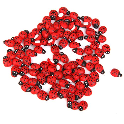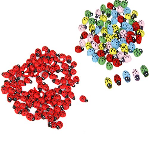 Flameer 約100個 木製 テントウムシ ミニチュア マイクロ風景置物 ドールハウス 箱庭用