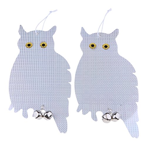 - 鳥ごとに2つの鳴き声の鐘が特徴のこの吊り下りのフクロウのセットで音を使って鳥を怖がらせる。