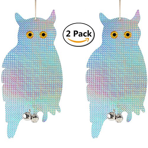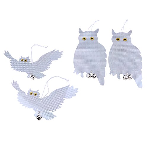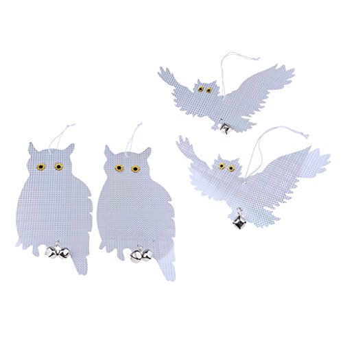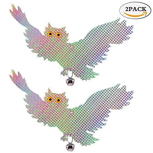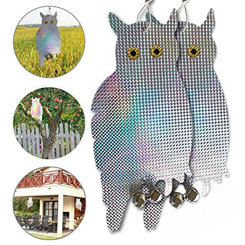 - 鳥ごとに鳴き声を鳴らすこの吊り下りのフクロウのセットで、鳥を怖がらせる。