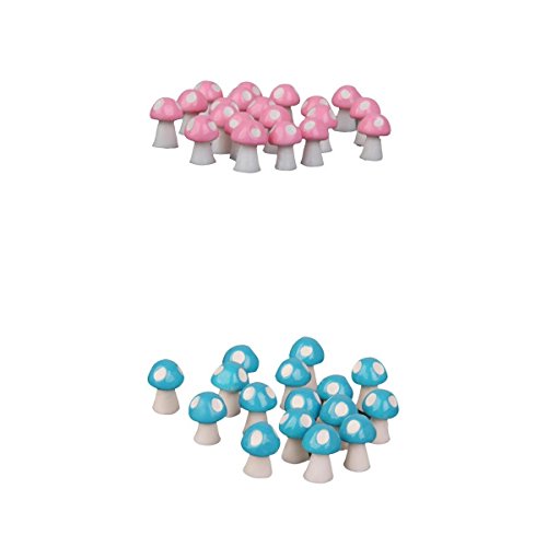 Flameer キノコ 各色20個 ミニチュア 盆栽 DIY ガーデン マイクロ風景 装飾 樹脂 カラフル - ピンク・ブルー