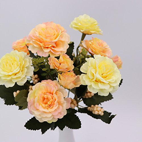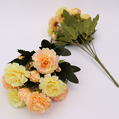 Flameer 造花 インテイア オフィス テーブル 装飾 ブーケ 観賞植物 シルク 7色選択 人工牡丹 - 黄