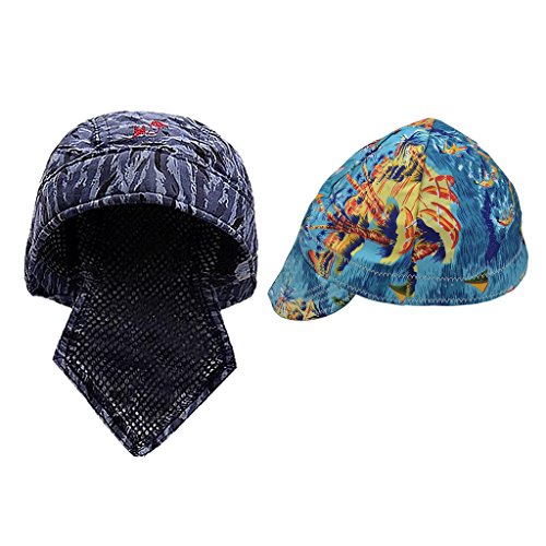 Flameer 2個入 溶接帽子 作業キャップ スカーフ コットン製 ウェルダー 保護ヘルメット 耐久性