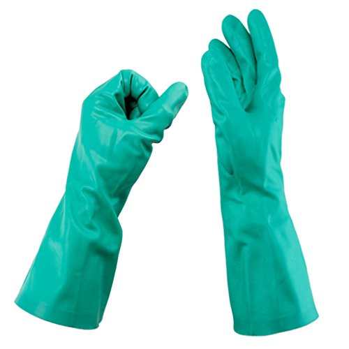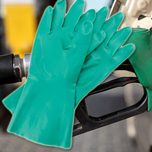 Flameer 高品質 ニトリルゴム 作業手袋 30cm 滑り止め 耐摩耗性 耐油 溶剤 快適 緑