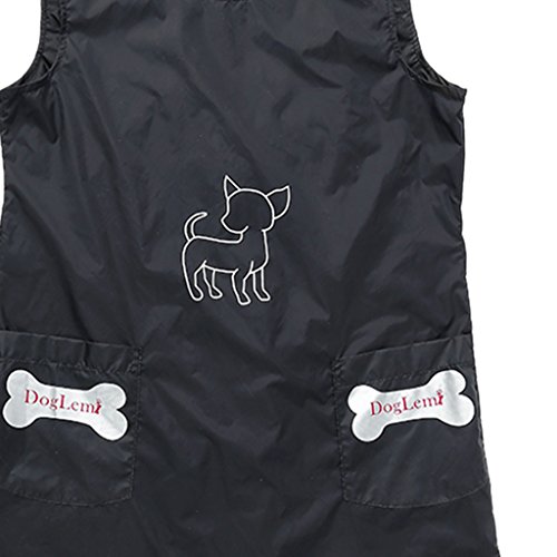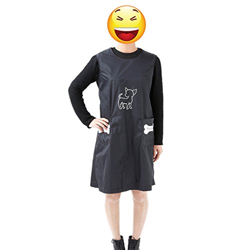 Flameer 可愛い 防水 エプロン トリミング用 犬 猫 美容用 水浴び エプロン ポケット付き ブラック 通気性