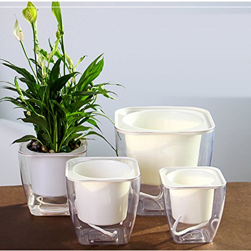 Flameer 植物鉢 透明 プランター 綿紐付き 自己吸収 フラワーポット 2個セット スクエア+ラウンド 通気性
