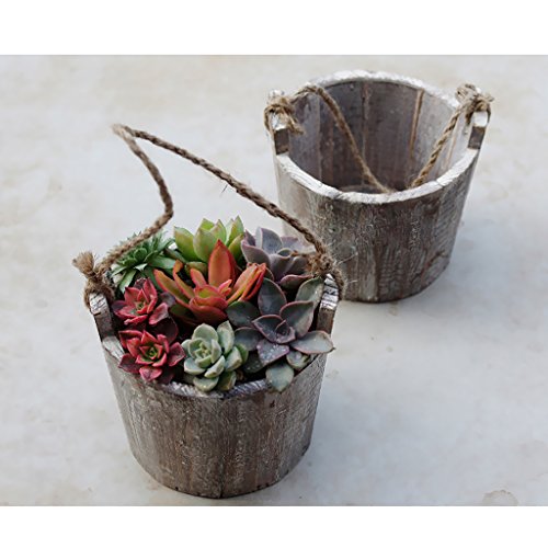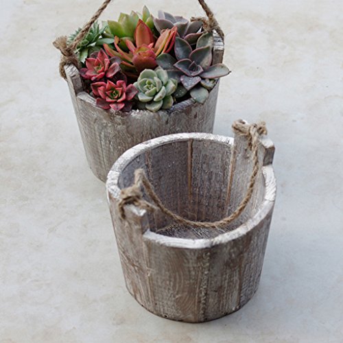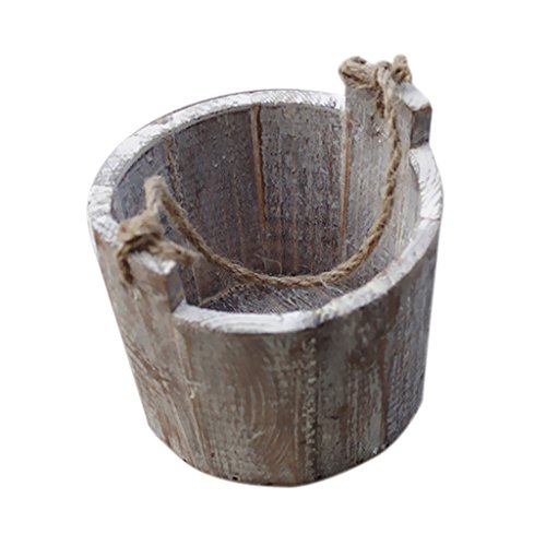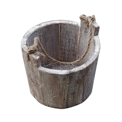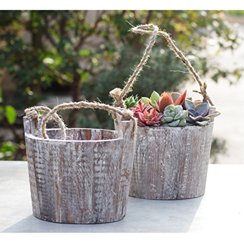 Flameer 木製 麻ロープ バケツ ポット フラワー シーズンズ プランター ガーデン 装飾 デコレーション