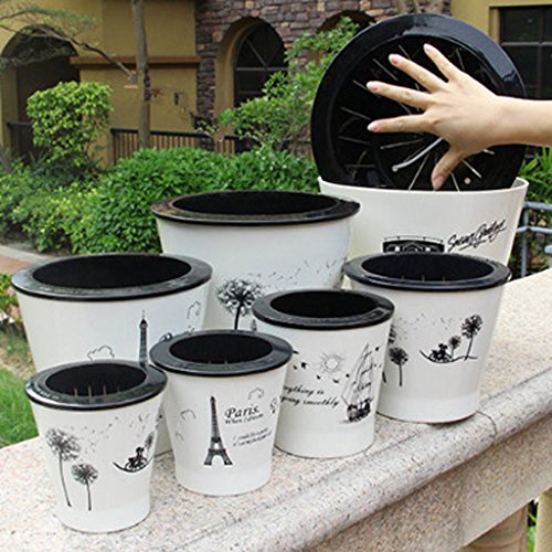 - このモダンなスタイルのプランターは、過剰な水をプランターの底に保管し、必要に応じて鉢に提供することができる二重層設計のおかげで、装飾的で機能的です。