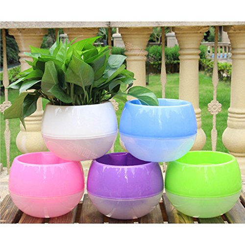Flameer 鉢植え 植物栽培 自己給水 プランター 通気性 穴付 プラスチック 全5色4サイズ フラワーポット - 紫 15x15cm