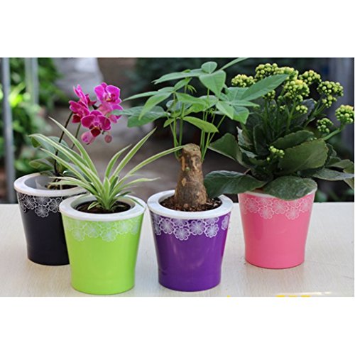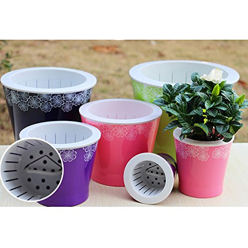 Flameer 鉢 自己給水 植物栽培 プランター 穴付き 通気性 フラワーポット 全4色2サイズ 室内装飾 園芸 耐久性 - 青 S