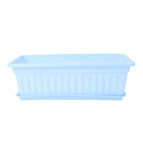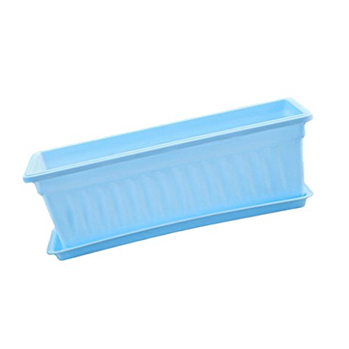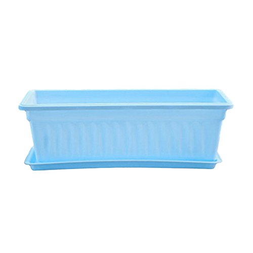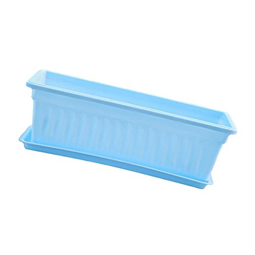 Flameer 植物栽培鉢 排水口 トレイ付き 多肉植物ポット 長方形 全7色 プランター - 青