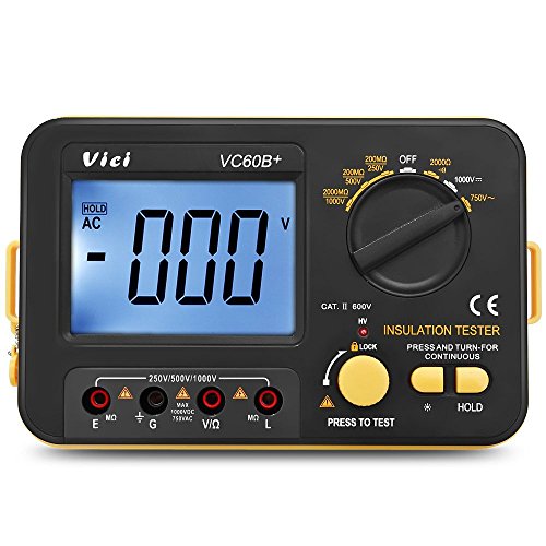 デジタル絶縁抵抗Megohmmeter Vichy vc60b +テスターMegohmmeter電圧計メーターDC 250 V 500 V 1000 V with LCD表示2クリップケーブル肩ストラップBattery Powered