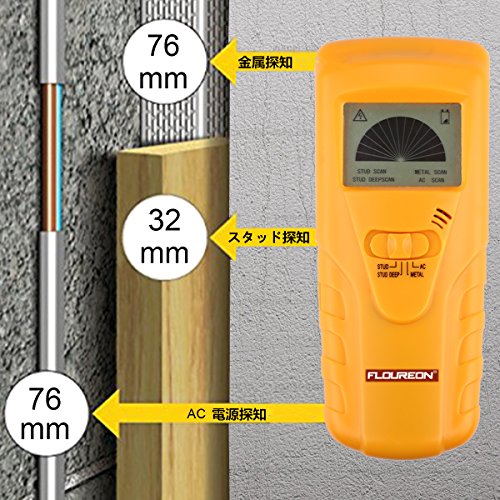 Floureon 探知機 3-in-1 金属 電線 スタッド 木材 高感度 ポータブル 使用簡単 TH-110