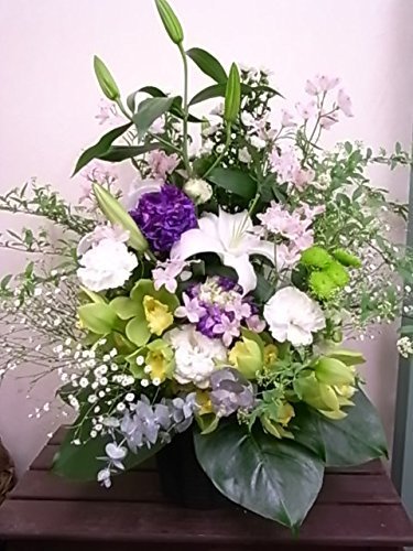 お供えアレンジおまかせ100 【生花】【ご仏壇の花】【お供え花アレンジ】【法事用アレンジ】色をご指定ください。季節・時期の入荷により花材・資材は変更いたします(写真は一例です) お届けのご希望日時は注文日から 5~20営業日で必ずご指定ください 。 (白・グリーン・紫・ピンク・クリームまたはオレンジ)