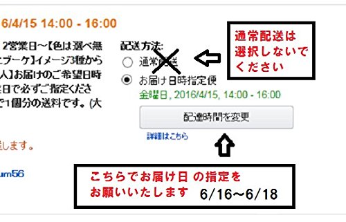 - 通常配送を選択せずに、お届けのご希望日時は6月16日~6月18日で必ずご指定ください。amazonのシステム上ご注文内容の変更は出来ません。ご注文内容変更をご希望の場合は、1度キャンセルをし、新たにご注文をお願いいたします。(ご変更・キャンセルは、発送日の6日前まで)