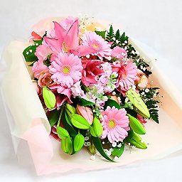 華やかなユリの花束 ピンク