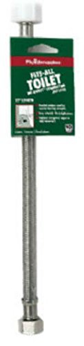7/8-Inch Female Ballcock Thread by 3/8-Inch Female Compression Thread, 7/16-Inch Female Compression Thread or 1/2-Inch I.P. Female Straight Thread. Stainless steel braiding for extra protection. 5 year warranty. Protect your home and eliminate guesswork with a Fluidmaster Fits-All Braided Stainless Steel Flexible Toilet Connector. Using the included adapters, this connector can connect your faucet to either a 3/8-Inch female compression, 7/16-Inch female compression or 1/2-Inch iron pipe female straight thread wall water supply, so there's no need to guess what your fitting size is. Made from high quality flexible PVC and braided in stainless steel, this connector won't burst or leak in even the highest pressure conditions.
