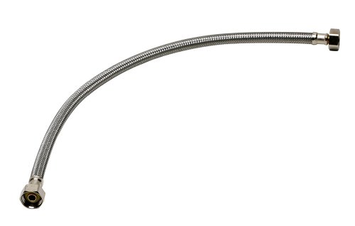 16" faucet connector. No-Burst connector. 1 connector fits 4 shut-off valve sizes: 3/8", 7/16", 1/2" Male compression and 1/2" Male iron pipe. 1/2" Female pipe straight threads (to fit faucet shank) on other end. Stainless steel connector with nickel-plated brass hex nuts. Stainless ferrules are extra long, with more crimps. Exceptional flexibility for fast, easy installation. Won't kink or crease, even in the tightest of spaces. Heavy-duty brass hex nuts are easy-to-grip with fingers or tools. 10 year warranty. 16" long ---- 1. 海外直輸入品となりますので、新品であっても、パッケージに多少のダメージがある場合もございますが、商品本体には問題ございませんのでご安心ください。2. 日本国内でのメーカーによる製品保証等は適用されません。3. パッケージや、説明書等は、英語表記となります。
