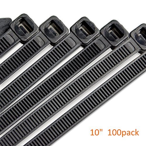 10インチHeavy Dutyナイロンケーブルタイ、100ポンド引張強度、100個、Zip Ties with 0.24インチ/ 6 mm幅inブラックby flurhrt、インドア、アウトドアUV耐性