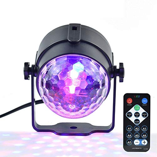 FlyCreat ステージライト ミラーボール 舞台照明 家庭版 RGB LED 7つモード+フラッシュ+音声起動 クリスマスライト 音声で光が変化 回転スピード/角度調節可 水晶魔球 ミニステージ照明 ディスコライト マジックボール 多彩 エフェクトライト 回転ライト カラフル リモコン付き ステージ/ディスコ/パーティー/KTV/DJ/カラオケ/クラブ/ライブ/バー/結婚式/演出用 店照明用ライト カラーステージ ポットライト イルミネーションライト 照明マシン 【ハロウィン クリスマス 投影ライト】ホームパーティー イベント プロジェクターライト 誕生日 ダンス お祝い 雰囲気を盛り上げる (disco light)