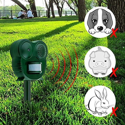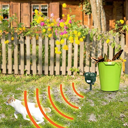 - 高周波数の超音波と強いフラッシュ放出するによって動物(猫、犬、ネズミ、キツネ、鳥、げっ歯類など)を傷つけずに追い払う猫よけ 超音波です。また、薬剤、化学薬品が一切含まれていないので、嫌な臭い、中毒事件を発生することもなく、人体・環境・動物には無害な動物撃退器です。