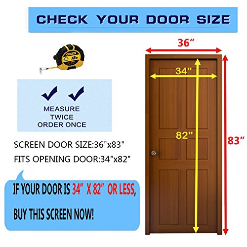 ドアを2度測定して、注文は1回>>次のサイズのドアに適合。最大34 X 82インチ。