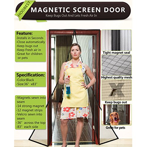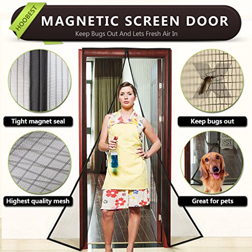 Hoobest 磁気網戸-頑丈なメッシュ&フルフレームのマジックテープ ドア開口部最大34 x82インチ ブラック Screen-01