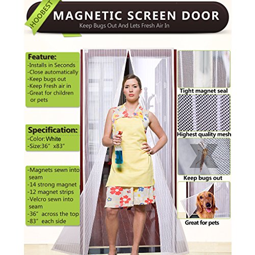 Hoobest 磁気網戸-頑丈なメッシュ&フルフレームのマジックテープ ドア開口部最大34 x82インチ ホワイト Screen-002