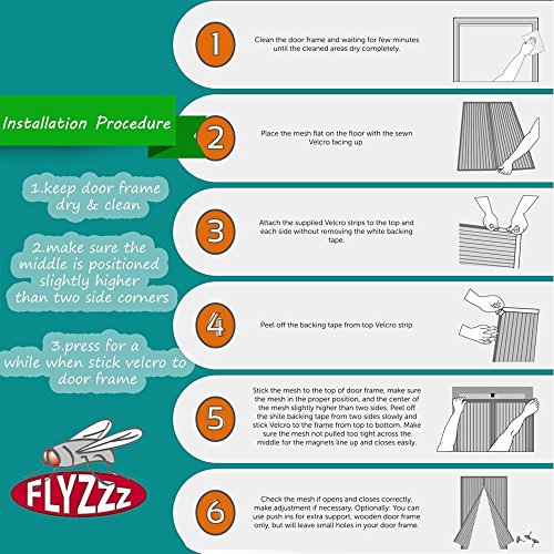 flyzzzマグネットピースClosing画面ドアメッシュカーテン、磁気ネットMosquito、バグ画面ドア、Keeps Fresh air in Fits Doors Up to 35x82 Inches Max ブラック Flyzzz Screen Door