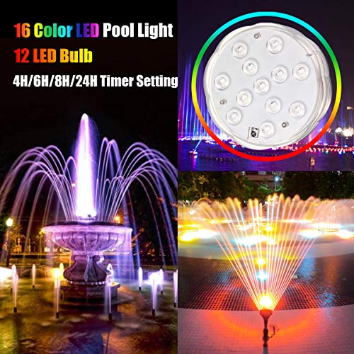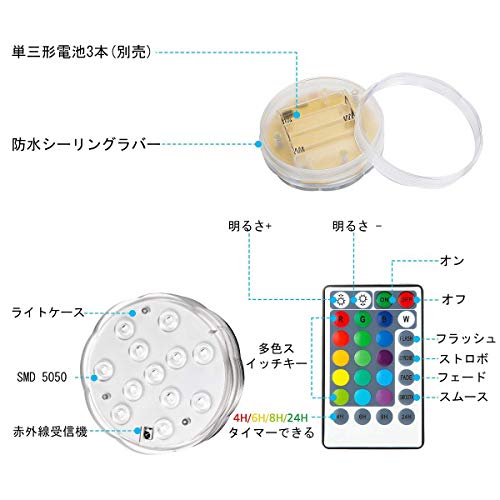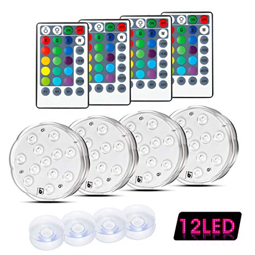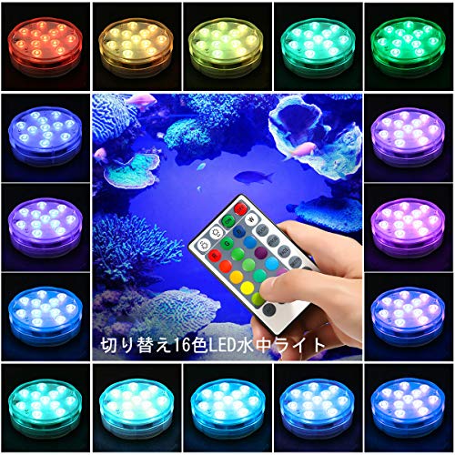 Focuspet 潜水ライト 水中ライト 12個高光度LED素子 タイマー IP68防水 16カラ―ライト リモコン操作 電池交換再利用可 4点セット イルミネーション アクアリウム デコレーション 水族館 水槽 花瓶 プール バスルーム クリスマス ハロウィン