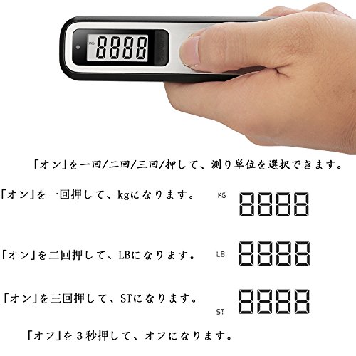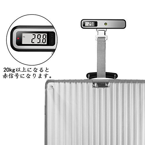 - 液晶ディスプレイ電子吊りスケール:読みやすいLED液晶ディスプレイ、数字はもっとはっきりとしています。また、荷物は20kg以上になると、パイロットランプが赤信号で注意します。 20kg以下は緑信号です。最大50kgまで測れます。旅行用、家庭用、すべての要求に満足されます。