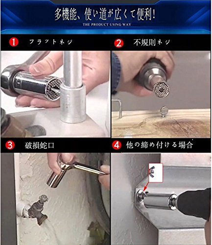 - 汎用性が高い: 強力な、小型で携帯に便利です。相手の形状に自動で合せて簡単に締めたり緩めたりできます。四角ナット、アイボルト、舐めてしまったナットボルト、蝶ネジ、フックネジ、逆トルクス E型 などなど六角7mm~19mmソケット内に納まる範囲までのサイズで様々な形状の物を回せます。