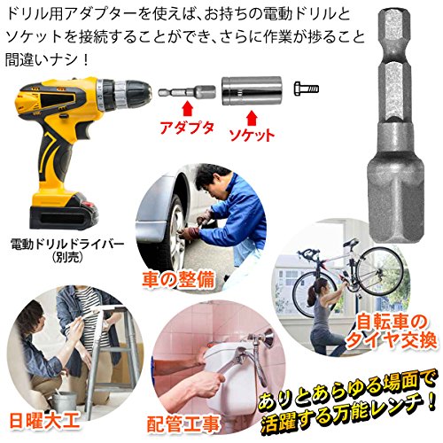 Fonice 万能ソケット ユニバーサル ソケットレンチ 2点セット( 7~19mm,1/4~3/4インチ)対応 グリッパー & ドリルアダプター