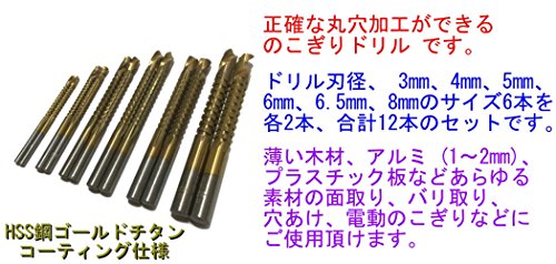 - 【ドリル刃径】 3mm 4mm 5mm 6mm 6.5mm 8mm のサイズ6本を各2本、 合計12本のセットです。