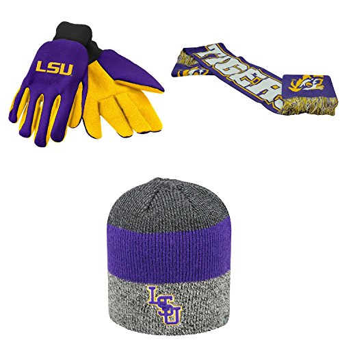 NCAA LSU Tigers SpiritスカーフSunsetビーニー帽子とグリップ作業グローブ3パックバンドル
