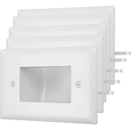 Fosmon 1-gang Recessed低電圧ケーブル壁プレートのインストール用スピーカーワイヤ、同軸ケーブル、HDMIケーブル、またはネットワーク/電話ケーブル(ホワイト) 1-Gang (5Pack) - Recessed ホワイト HD8140-5Pack