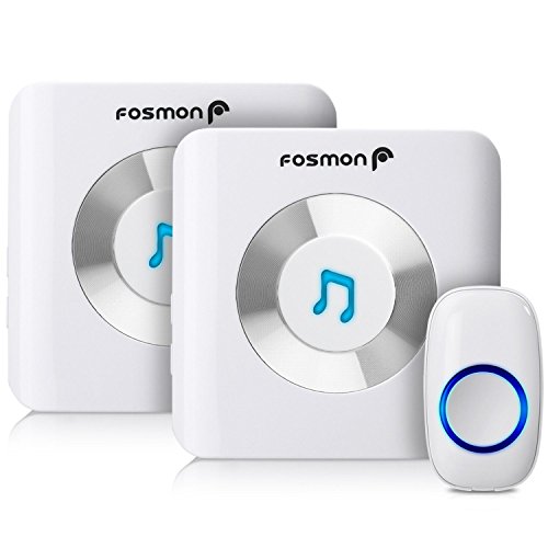 Fosmon 51002HOM ワイヤレス チャイム / ドアベル / 玄関 呼び鈴 / 呼び出し鈴【無線範囲/受信距離 300m/1000ft | 52 種チャイム音 | 4 節音量調整 | LEDライト】押しボタン送信機1個、受信機2個 (ホワイト)