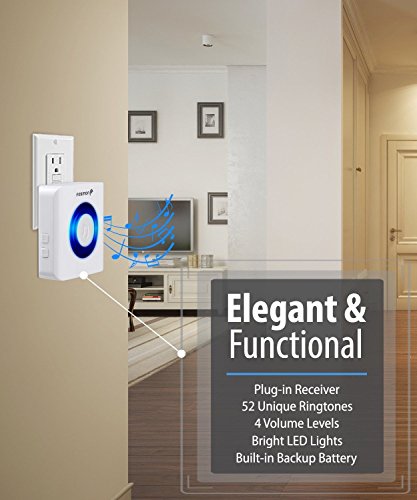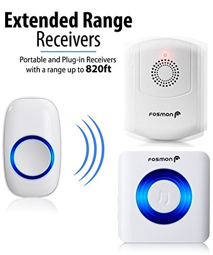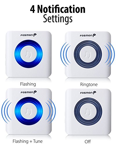 Fosmon ワイヤレスドアベル受信機と送信機は内蔵LEDライト機能が付いてる。聴覚障害者のための視覚的に知らせてくれる。