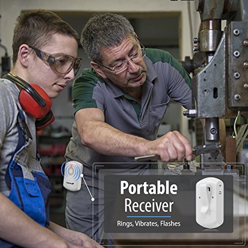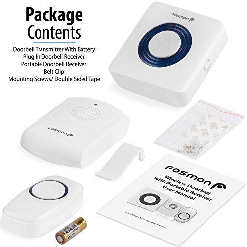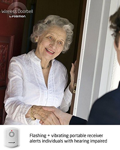 Fosmon 51006HOM ワイヤレス ドアチャイム / ドアベル / 玄関 呼び鈴 / 呼び出し鈴【無線範囲 – 250m/820ft | 52 種チャイム音 | 4 節音量調整 | LEDライト】特別なニーズ向け(介護用呼び出しチャイム、聴覚障害者、雑音環境)-リモート1個、受信機1個、ストラップ付き携帯型振動受信機1個 (ホワイト)