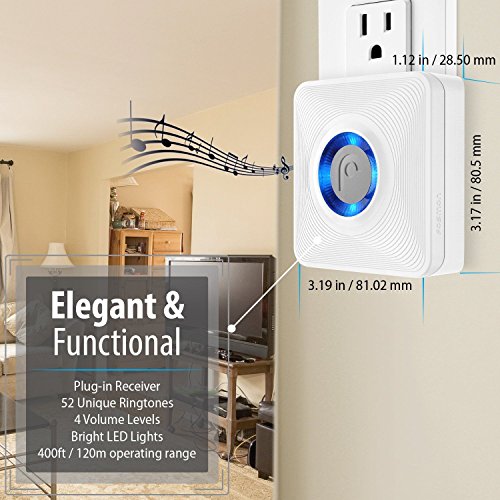 Fosmon 51046HOMUS ワイヤレス ドアベル ドアチャイム 呼び鈴玄関【無線範囲 120m/400ft | 52 種チャイム音 | 4 節音量調整 | LEDライトインジケータ】家庭用 店舗用 レストラン用 受信機 1台 (送信機含まれていない)