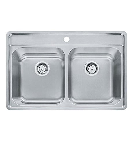 Franke evdag901 – 18 Evolution 33 1 / 2 "ダブルボウル差し込み式ステンレススチールキッチンシンクで光沢サテンからホームコレクション: 1穴と蛇口蛇口穴