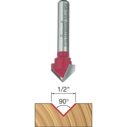 Product Description Freud 20-104 1/2-Inch Diameter 90-Degree V-Grooving Router Bit with 1/4-Inch ShankApplication: Engraving, decorative accents and signsFreud 20-104 1/2-Inch Diameter 90-Degree V-Grooving Router Bit with 1/4-Inch Shank Features:; Ideal for making signs and adding decorative accents to furniture and plaques, Freud's 'V' grooving bits are designed to cut deep or shallow 'V' grooves; Cuts all composition materials, plywoods, hardwoods, and softwoods; Use on CNC and other automatic routers as well as hand-held and table-mounted portable routers.; Ideal for making signs and adding decorative accents to furniture and plaques; Designed to cut deep or shallow V grooves; Cuts all composition materials. plywoods, hardwoods and softwoods; Use on CNC and other automatic routers as well as hand held and table mounted portable routers; 90; angleFreud 20-104 1/2-Inch Diameter 90-Degree V-Grooving Router Bit with 1/4-Inch Shank Specifications:; Overall Dia.(D): 1/2'; Carbide Height(h): 7/16'; Large Radius(R): 90;; Shank Dia.(A): 1/4'; Overall Length(H): 1-3/4' From the Manufacturer Freud's V grooving bits are designed to cut deep or shallow V grooves. These bits are great for sign making or for adding decorative accents to furniture and plaques. Covered by Freud's limited lifetime warranty.