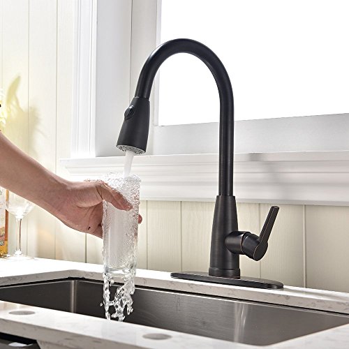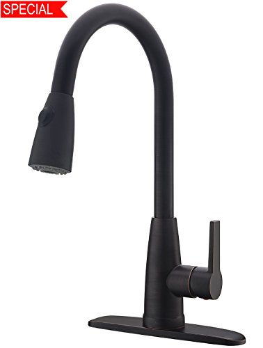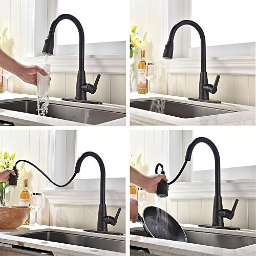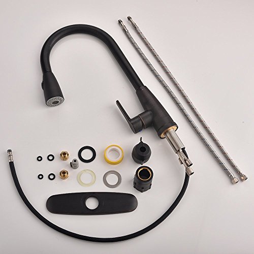 Antique Brass High Arch Single Lever Pull Down Pull Out Spray Black Oil Rubbed Bronze Kitchen Sink Faucet, ORB Kitchen Faucets With Sprayer Escutcheon [並行輸入品]