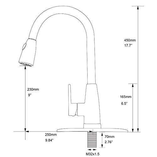 - Overall height:17.7"; Spout Height:9.0"; Spout Reach:9.84".