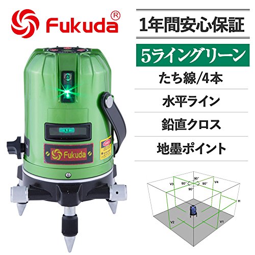 FUKUDA フクダ 5ライン グリーン レーザー墨出し器 EK-468G 360°微調整エンドレスネジ搭載【日本語説明書付属】