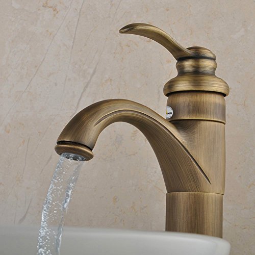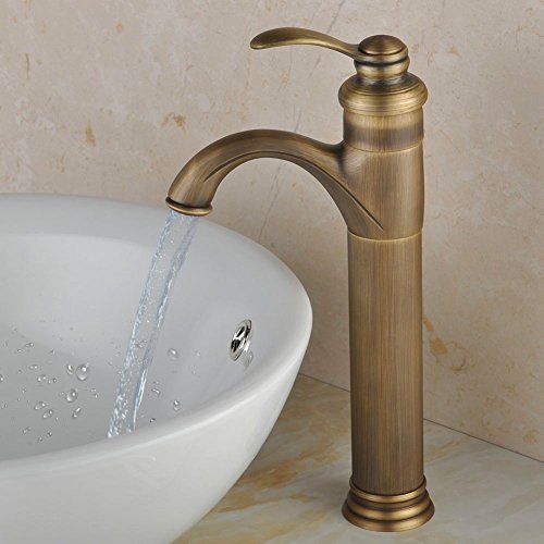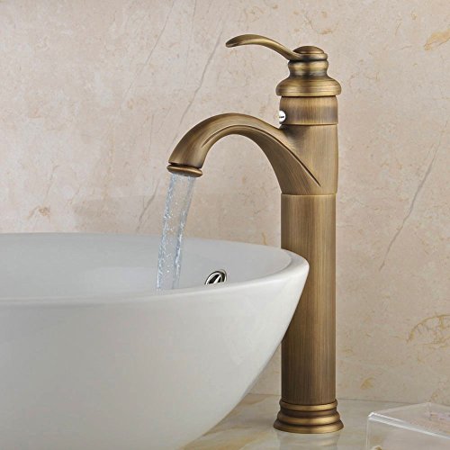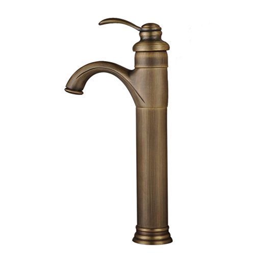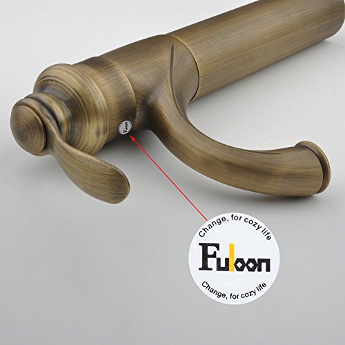 Fuloon バスルーム・キッチン用 洗面用 蛇口 冷熱スイッチ付き 銅 31cm クラシック・アンティーク 銅色 レトロ おしゃれ シングルレバー混合栓 (銅色, ロング)