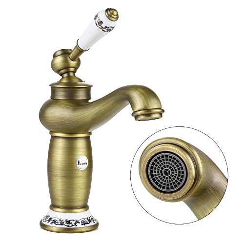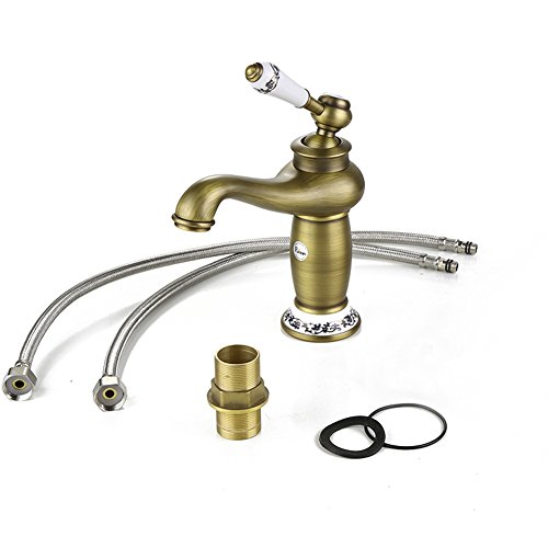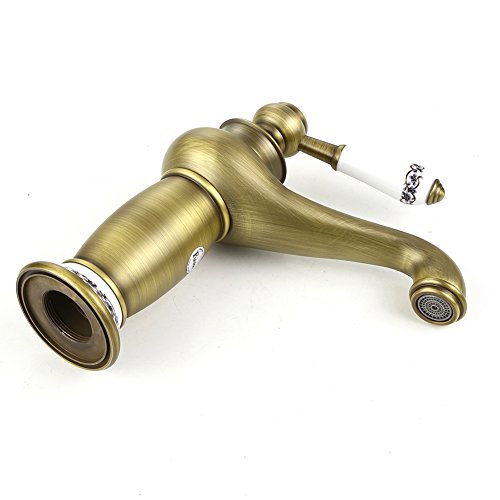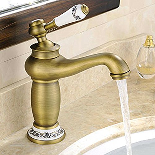Fuloon バスルーム・キッチン用 洗面用 蛇口 冷熱調整可能 銅 13cm クラシック・アンティーク レトロ おしゃれ シングルレバー混合栓 (銅色)