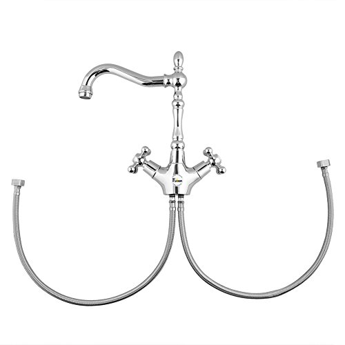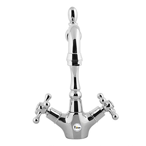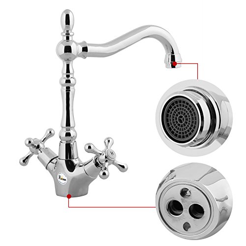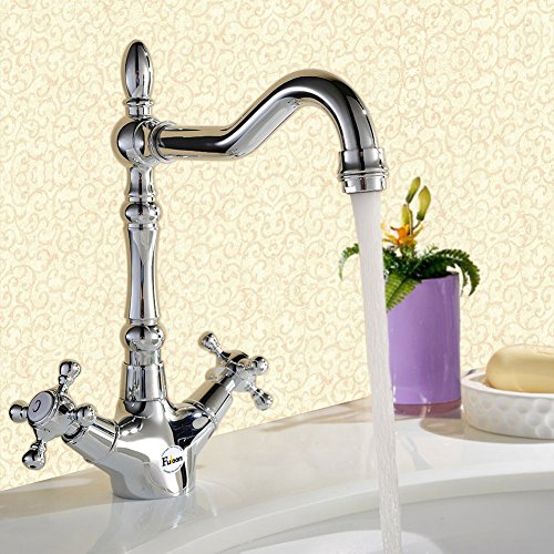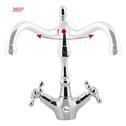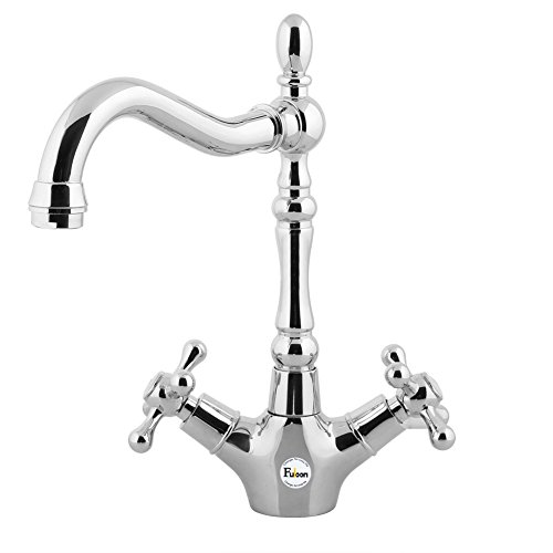 Fuloon キッチン・バスルーム用 綺麗な台所用蛇口 冷熱スイッチ付き 真鍮(黄銅) 欧米風 ファッション 2ハンドル水栓 ワンホール (銀色)