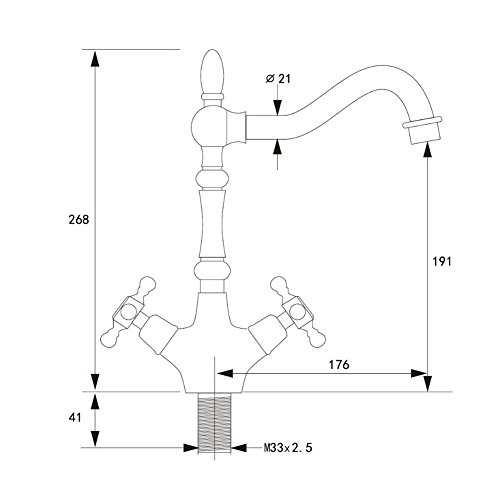 - サイズ:吐水口高さ:191mm 吐水口長さ:176mm 全体高さ:268mm