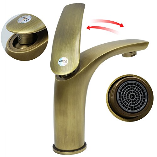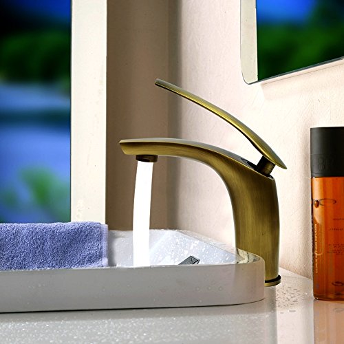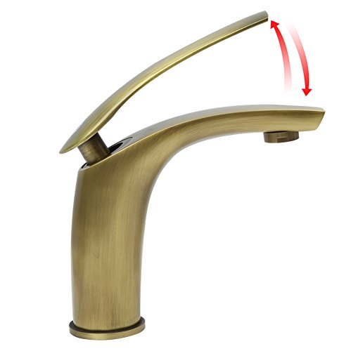Fuloon バスルーム・キッチン用 洗面用 蛇口 冷熱スイッチ付き 銅と合金素材 15.5cm おしゃれ 7色選択可能 シングルレバー混合栓 家庭・ホテル・レストラン利用可能 (サイズ1, 銅色)