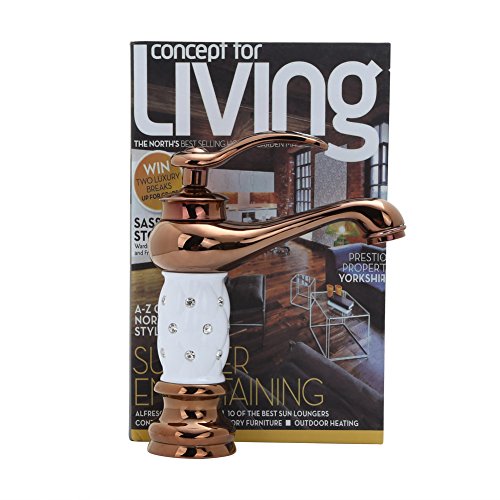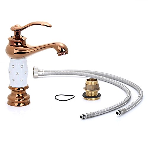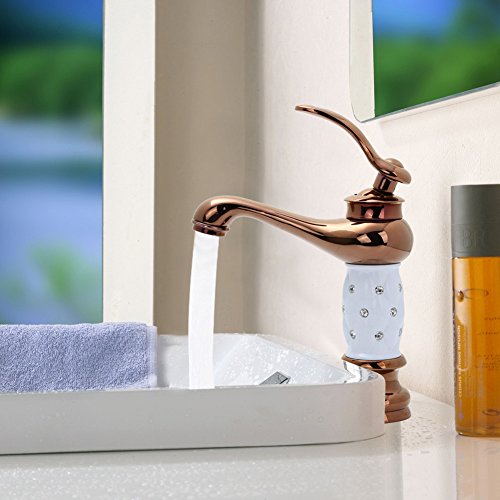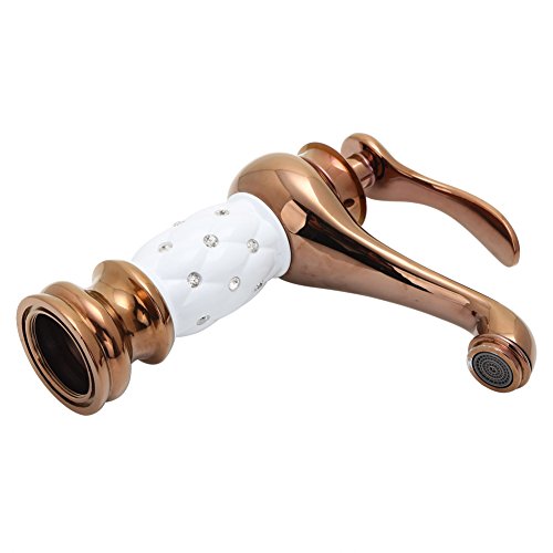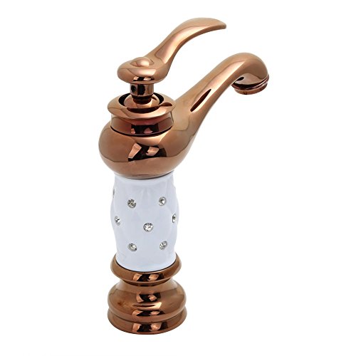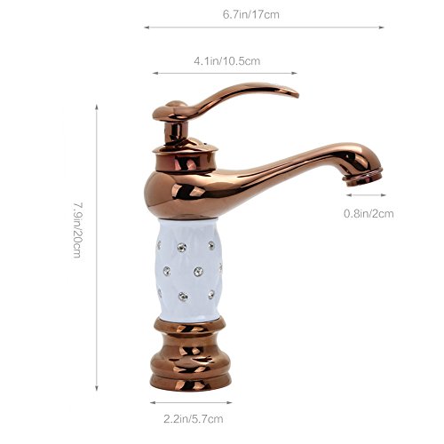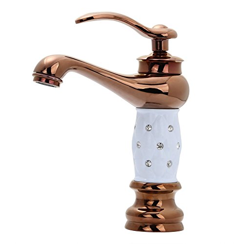 Fuloon バスルーム・キッチン用 洗面用 蛇口 冷熱調整可能 銅 20cm 人造ダイヤ付き クラシック・アンティーク レトロ おしゃれ シングルレバー混合栓 (銅色)